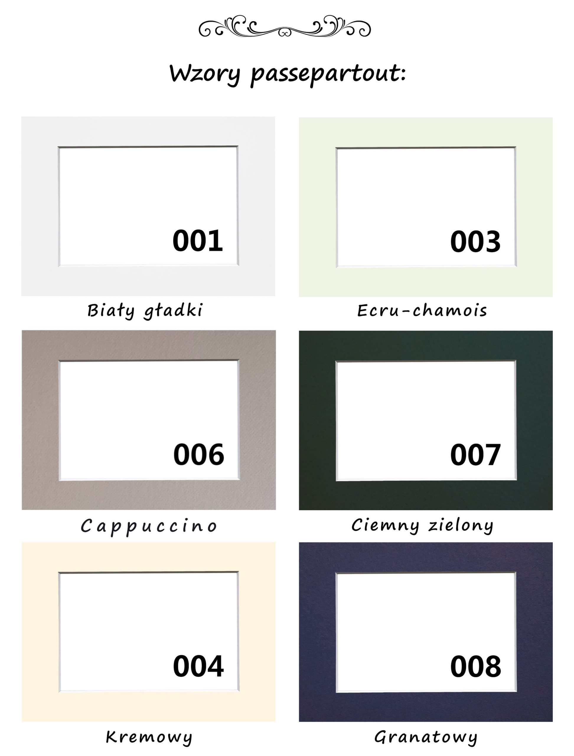 Wykonujemy passe-partout nietypowe, ukierunkowane na potrzeby klienta. Urządzenia, którymi dysponujemy pozwalają na skorzystanie z bazy kilkuset wzorów gotowych (tematycznych) jak i również na realizacje własnych projektów. Realizujemy zamówienia w rozmiarach standardowych jak i pod wytyczne Klienta. Posiadamy bogatą bazę wzorów oraz kolorów.